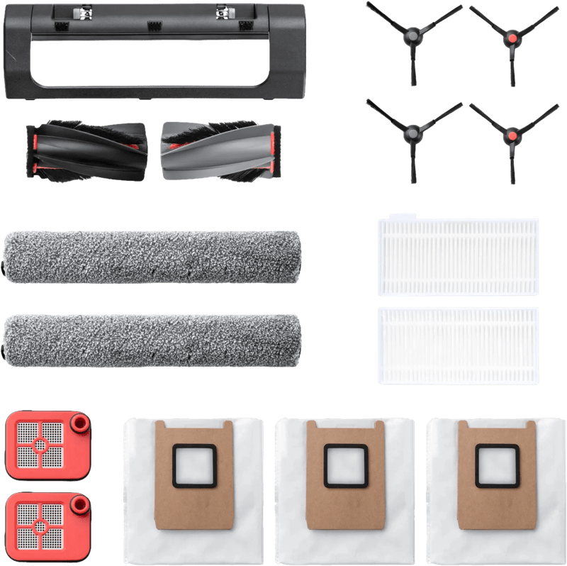 Met het eufy Omni C28 Onderhoudspakket houd je je robotstofzuiger in topvorm. In het pakket zitten 2 sets zijborstels, 2 vuilwaterfilters, een rolborstelset met 2 rolborstels, 3 stofzakken en 2 stofbakfilters. Je hebt dus meteen een voorraad reserveonderdelen in huis. De zijborstels vegen stof en kruimels langs plinten en uit hoeken naar de zuigmond. Zo maakt je robot ook de randen en hoeken goed schoon. De rolborstels houden contact met de vloer en tillen vuil omhoog. Dat werkt goed bij tapijt of dierenharen. Met de stofbakfilters en stofzakken blijft de zuigkracht op peil en vang je fijnstof netjes op. De vuilwaterfilters houden het dweilsysteem schoon. Zo blijft je robotstofzuiger goed werken. Let op: Dit onderhoudspakket is alleen geschikt voor de Eufy Omni C28 robotstofzuiger (EAN: 0194644261597,194644261597)